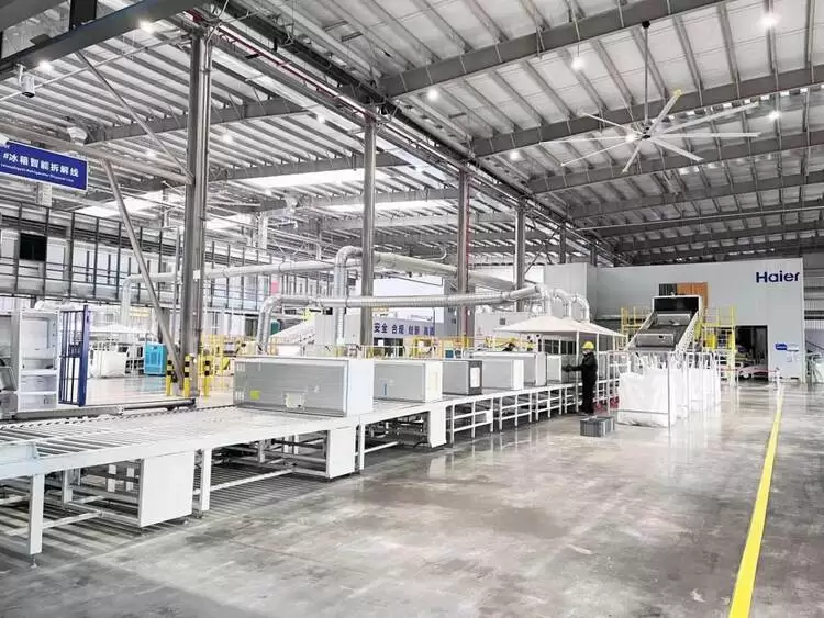 在产业绿色化上,海尔智家在青岛莱西打造了行业首座融合“回收-拆解-再生-再制造”为一体的再循环互联工厂。从全国各地回收的家电,在这里通过全流程可视化、规范化的精细拆解、破碎清洗、塑料造粒,最终生成高品质的循环新材料。而这些再生材料纯度高达99%,纯度行业最高,堪比原生材料,可用于家电、汽车、日化,甚至食品级塑料等领域。目前,该工厂每年可实现废旧家电拆解200万台,循环材料再生3万吨。