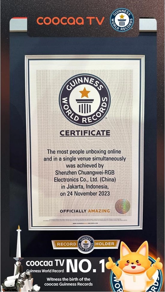 - 全球最多人同时线上和线下开箱!酷开再次创造吉尼斯世界纪录