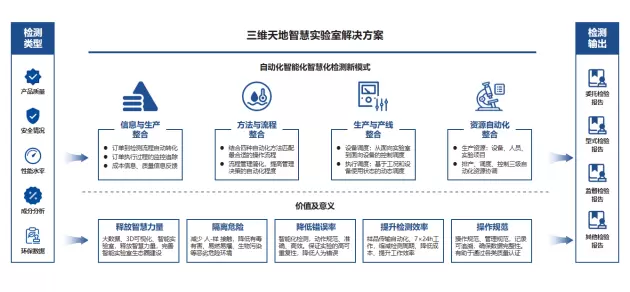 三维天地针对性地打造了一套智慧实验室综合管理解决方案,如同一颗“智能大脑”,采用应用各类数字化技术、智能化设备和应用系统进行有机融合,并通过实验过程自动化执行平台的构建,可深度整合各业务模块,协调使用各项资源,形成一个高效的管控整体,从而显著提升实验室的综合运营与协作效率,优化实验室资源管理与安全管理。