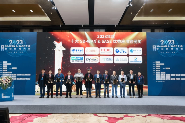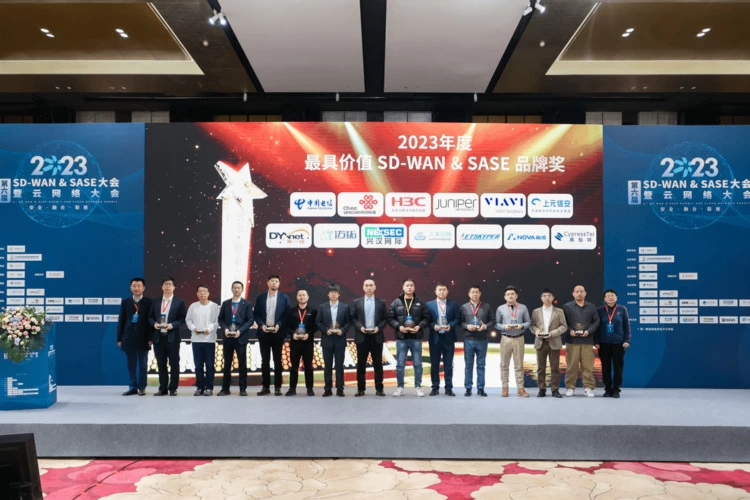 为发掘、评选和奖励在SD-WAN、SASE领域取得显著成果的单位,遴选行业内优秀解决方案、典型应用场景和项目实践,联合各界共同推动应用创新与生态融合,第六届SD-WAN & SASE大会暨云网络大会组委会特别发起了2023 SD-WAN & SASE Awards年度评选活动。此次评选共设立了2023年度最具价值 SD-WAN & SASE品牌奖、2023年度十大SD-WAN & SASE优秀应用案例奖以及2023年度垂直领域优秀案例奖。经过大众投票及专家评审,以下企业斩获了奖项,并在现场进行了隆重的颁奖仪式。