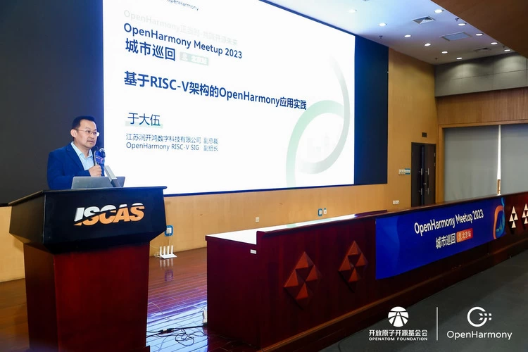 江苏润开鸿数字科技有限公司副总裁、OpenHarmonyRISC-VSIG副组长于大伍做主题分享
