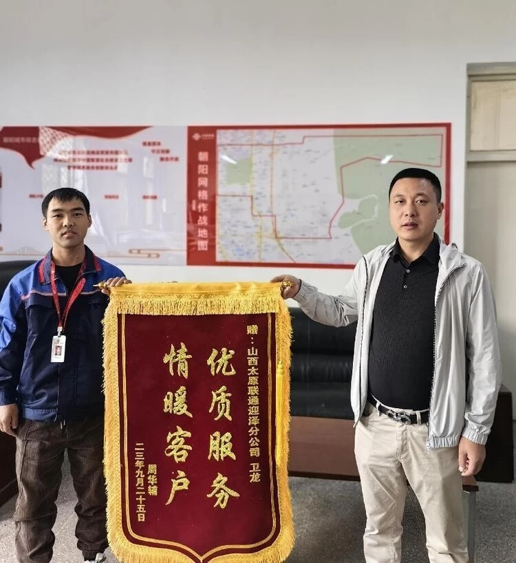 9月25日,一面怀有满满感激之情的锦旗送到了朝阳网格,客户对卫龙的专业服务赞不绝口:“小卫师傅,你不仅技术过硬,服务更是无可挑剔。感谢你为我们解决了宽带移网的问题,也感谢联通有你这样的好员工!”从那以后,卫龙便承包了华辅鞋行及相关的所有宽带移网业务。他知道,他的努力被看到了。