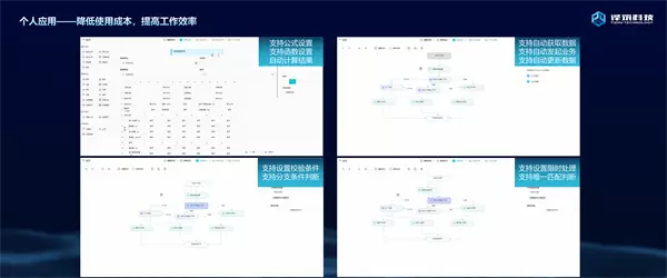 第三个诉求是个人应用效率的提升,怎么样去提升个人应用的效率,减少重复性的工作,译筑科技在表单模板中加入了大量自动化计算,比如说支持控制函数、支持自动计算、支持自动获取大型更新数据、支持设置校验条件,进行一些具体提醒,支持设置限时处理。做这些工作目的是什么?就是希望减少人工操作,不增加现场管理人员额外负担。