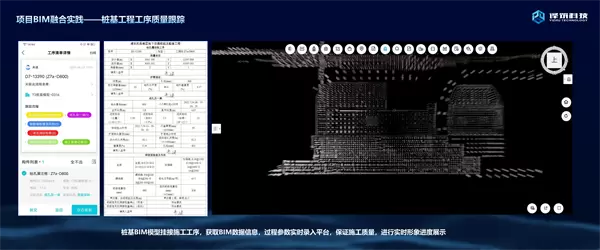 以下是上海建工某项目桩基管理应用场景,通过模型与业务流程关联完成表单填报,这些表单填报都是从业务层面直接提取出来,整个过程只有少量的签字,及少量需要现场人工确认的流程。这些数据最终可以展示在BIM模型上形成可视化的整体定位效果。