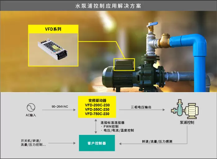 明纬新产品VFD系列:150~750W 工业用直流无刷马达变频控制驱动器