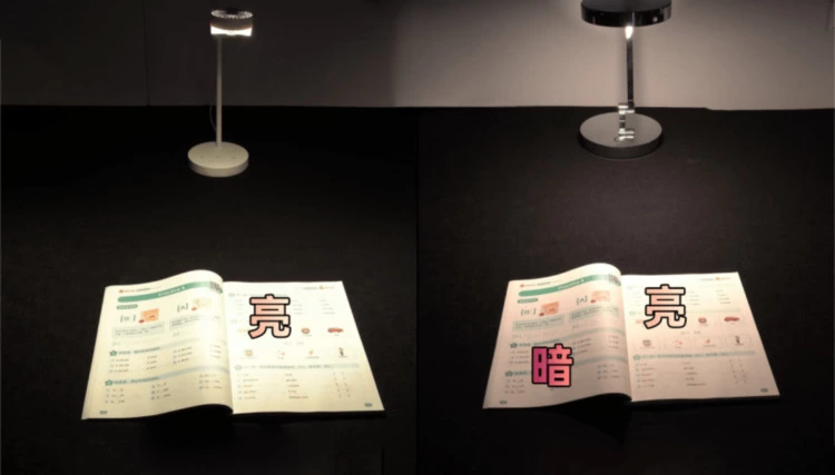 2、随机翻开一本书放置台灯灯源正下方,观察书本的亮度、色彩;