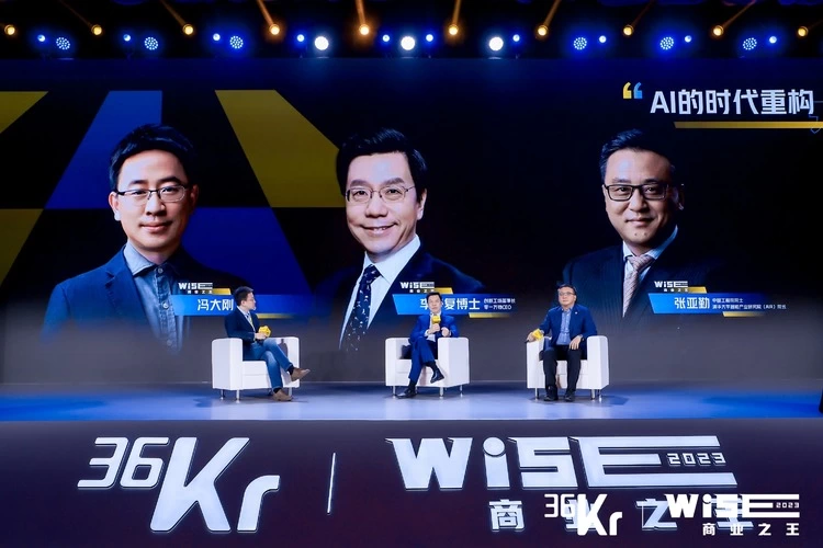36氪CEO冯大刚,创新工场董事长、零一万物CEO李开复博士,中国工程院院士、清华大学智能产业研究院(AIR)院长张亚勤