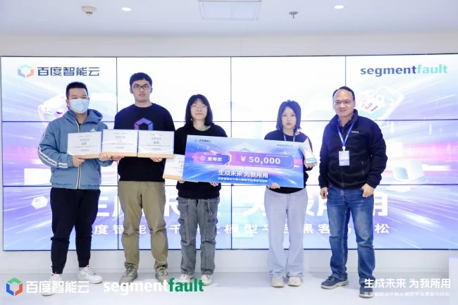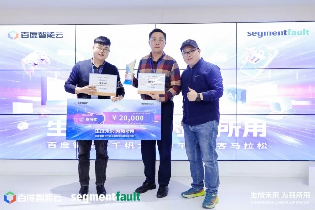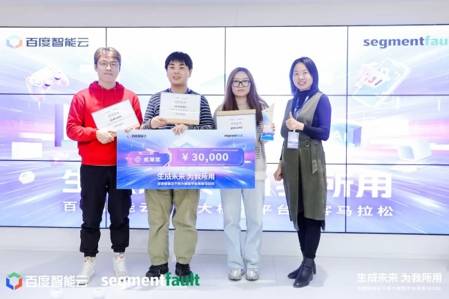11 月 26 日,百度智能云千帆大模型平台黑客马拉松在北京顺利落下帷幕。本次黑客马拉松由百度智能云主办,SegementFault 思否承办,以“生成未来,为我所用”为主题,鼓励开发者从提升自身工作效率和丰富娱乐生活体验出发,利用百度智能云千帆大模型平台构建创新应用,让生成式 AI 真正“为我所用”,解决实际问题。