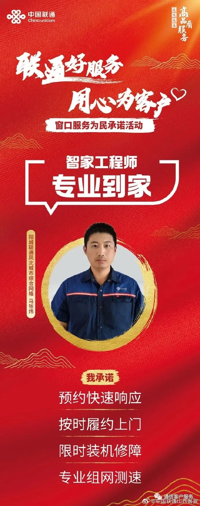 #联通好服务 用心为客户#承诺从心出发 服务用心呈现——山西晋城联通阳城分公司智家工程师马张炜