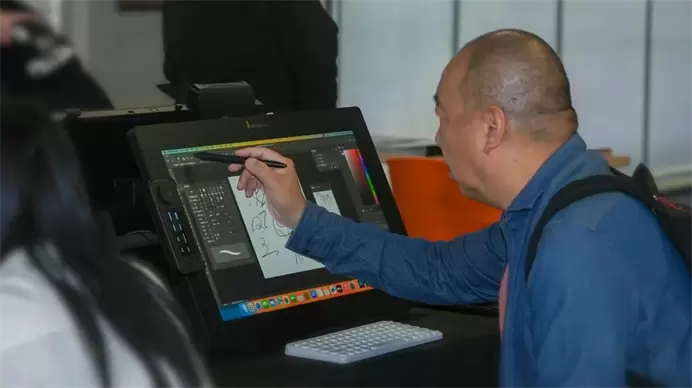 活动现场,汉王友基带来旗下高端旗舰数位绘图品牌Xencelabs马蒂斯和数字艺术创新品牌XPPen的多款数绘产品与嘉宾们进行交流体验。Xencelabs马蒂斯24寸数位屏以4K原彩显示、Pantone认证、特调压力曲线、集成化驱动等专业性能获得嘉宾们的连连称赞,为用户带来了非凡的工作室级创作体验。而XPPen则展示了Artist Pro 16(Gen 2)手绘屏、Deco Pro 16(Gen 2)手绘板等多款搭载X3 Pro 芯片数字笔的新品,让现场嘉宾感受到全球首创16K超敏压感创作体验。