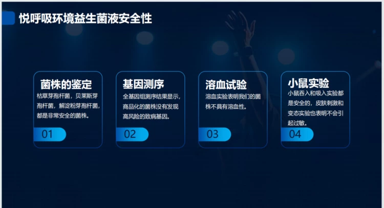 以悦呼吸的益生菌制造为例,悦呼吸十万级无尘车间生产,实验级超纯无菌水灌装,并且还通过益生菌四项检测来确保悦呼吸环境益生菌液安全性。