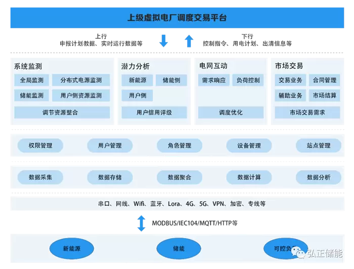 弘正数字化储能平台,不仅可以满足源网侧、用户侧等多元化场景应用。更重要的是,它可以作为虚拟电厂的核心组成部分,将用户侧分散的清洁能源、储能系统、可控负荷等多种可调节资源聚合起来,参与电力市场交易、参与需求侧响应、提供电网辅助服务等,不仅能够提供灵活的能量存储与释放,还能增强电网的稳定性和可靠性,助力可再生能源的大规模应用。