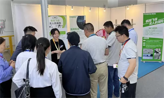 展会现场,帆陌科技资深业务人员为前来咨询的观众提供专业的无人机保险咨询与服务,并对帆陌飞保、帆陌优+、风控引擎等产品的保障内容和保障场景进行展示。