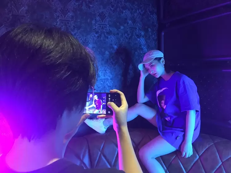 为了保证测试的效果,拍照地点选在了包厢中一处光线较为复杂的角落。在弱光的情况下,某品牌手机拍出的成片果然有些复杂——光线太复杂,模特小姐姐本身的气场完全被奇怪的光线隔离,特别是面部诡异的颜色和布满整个画面的噪点,成为了整张照片的最大败笔。