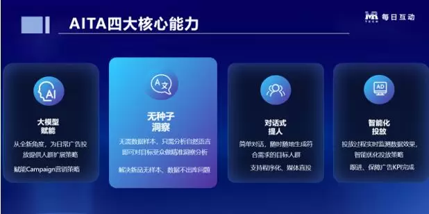 具体而言,每日互动通过对大模型进行精调,利用大模型语义和编织技术,把营销行业专业术语和数据世界里的数据语言打通,全新推出了“AITA智选人群”工具。