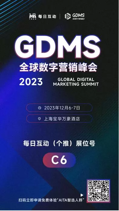 「共营」当下,数见未来。12月6-7日,2023 GDMS全球数字营销峰会即将在上海举办。数据智能上市企业每日互动(个推)应邀参加此次峰会并亮相C6展位,为品牌广告主带来全链路数据营销方案。其中,公司全新推出的“AITA智选人群”工具将成为展示亮点。作为每日互动在品牌营销领域最新的大模型应用成果,“AITA智选人群”能够对话式生成目标人群,用AI智能定向TA,帮助品牌广告主实现在AIGC时代的营销升级。