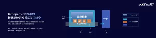 基于openVOC开放技术框架,东软睿驰希望构建一个开放共赢、灵活高效的创新生态,第三方开发者也能够更容易地参与到智能化软件的开发,开发A应用模块与B应用模块的人员无须见面,就可将不同应用组件在标准的、统一的平台进行组装式、集成式的模块化开发,实现应用功能自由、灵活的组合。