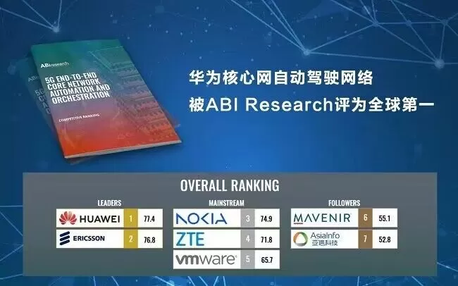 近日,全球著名权威咨询机构ABI Research发布了业界首个《5G核心网端到端自动化及编排能力竞争力报告》。该报告显示,华为核心网自动驾驶网络解决方案(ADN)凭借其业界领先的技术创新和商用部署,综合排名全球第一,被评为全球领导者。