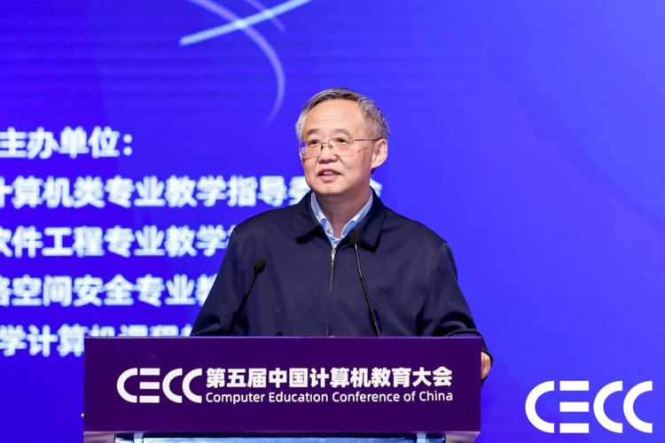 吴建平院士回顾了中国计算机教育大会自2019年首届举办以来的主题及盛况,对计算机教育未来发展提出殷切期望,希望通过此次大会的胜利召开,进一步推进全国计算机类专业人才培养,为建设社会主义现代化强国和实现中华民族伟大复兴提供强有力的计算机人才保障和智力支持。