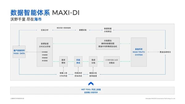 基于此,智驾科技MAXIEYE重磅发布海市MAXI-DI数据智能架构,全维覆盖量产数据闭环MAXI-DATA、真值系统MAXI-TRUTH SYSTEM、MET-TOOL全流程闭环测试开发工具链,以及仿真极限场景构建。