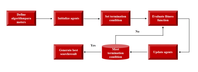 进行迭代搜索:在每次迭代中,根据一定的更新规则(如基于模拟群居生物运动步长的更新规则,如PSO、AFSA与SFLA)或根据某种算法机理设置的更新规则(如ACO)更新种群中的每个解。更新时考虑每个解的适应度和随机因素,以提高搜索效率。