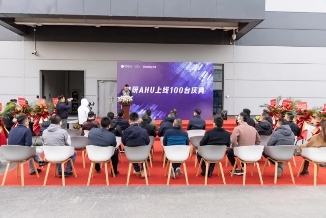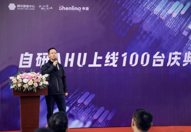 庆典上,申菱总裁潘展华先生上台发表贺词,潘总表示经过双方的不懈努力,腾讯&申菱合作的AHU间接蒸发冷机组最终达成预期目标,实现能效水平远高于同行,带来极高的经济效益和社会价值,本次成功实现大批量100台的交付,对增强当地互联网基础设施建设以及推动经济发展等方面具有重大意义。申菱将继续利用自身优势,结合我公司的间接蒸发冷却机组的交付硬实力、产品结构设计能力和产品应用丰富经验,为腾讯AHU间接蒸发冷产品在批量交付提供最高质量交付服务和保障。希望未来和腾讯集团有更多机会合作及共同合作更多的产品落地,期待双方更长远合作!