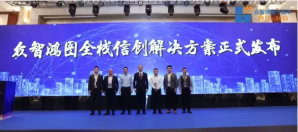 作为中国操作系统领创企业,统信软件受邀出席。在信创分论坛上,众智鸿图联合统信软件等生态伙伴共同发布了“全栈信创解决方案”,统信软件华中大区总经理刘锦出席该方案的启动仪式。