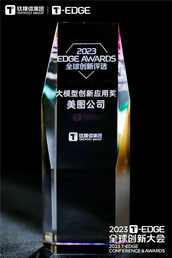 基于在AI视觉大模型领域的应用落地领先能力,美图自研AI视觉大模型MiracleVision(奇想智能)被授予2023 EDGE AWARDS大模型创新应用奖项。