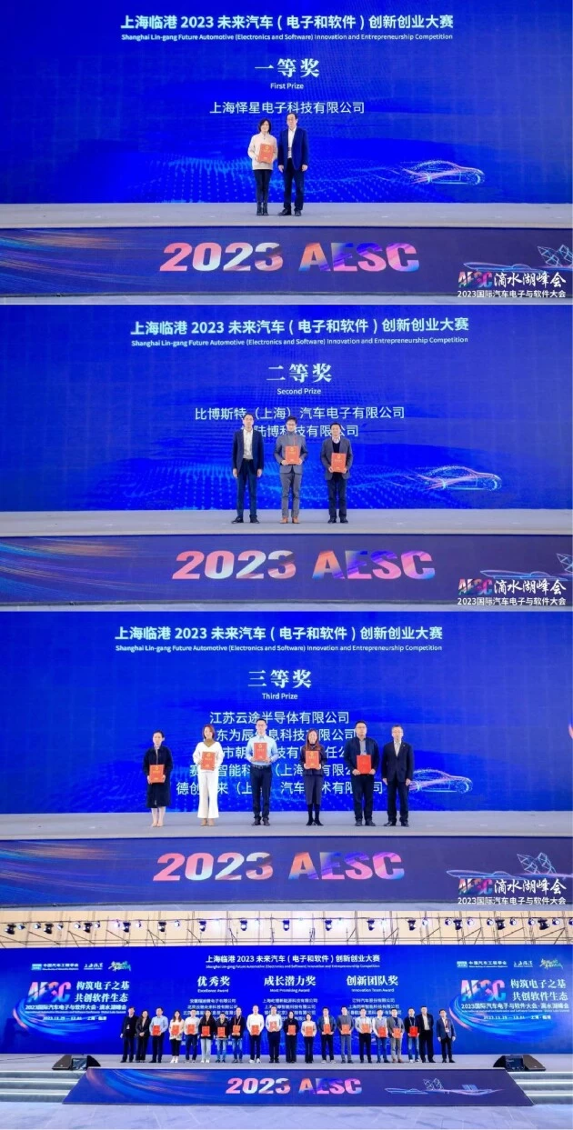 活动上,未来汽车(电子和软件)创新创业大赛颁奖仪式隆重举行。本次大赛面向汽车电子、汽车软件、自动驾驶等领域,吸引了超过80支不同领域的企业和团队前来参赛,经过层层评审选拔,最终24个参赛队伍脱颖而出,上海怿星电子荣获一等奖,比博斯特、格陆博等2家企业荣获二等奖,云途半导体、为辰科技、朝上科技、赛可智能、德创未来等5家荣获三等奖,安徽瑞迪微电子等8家企业荣获优秀奖,屹锂新能源等4家企业等荣获成长潜力奖,江铃汽车等4家企业荣获创新团队奖。