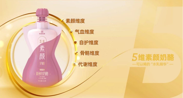 这款奶酪新品在营养功能和食品健康上都尽力满足女性消费者的个性需求。在营养功能上,五维素颜奶酪除了补钙补蛋白等酪制品皆具备的一般功能之外,还专为女性群体提供五个维度的营养支持,即抗氧维度、气血维度、自护维度、骨骼维度、代谢维度,由此组成五维营养系统,瞄准女性消费者的需求痛点,在成分研发中下了十足的苦功;五维营养支持的范围从外显的皮肤护理、气血调理,到人体内部的消化代谢、骨骼补钙、抗炎自护等,可谓面面俱到,全方位守护女性健康。
