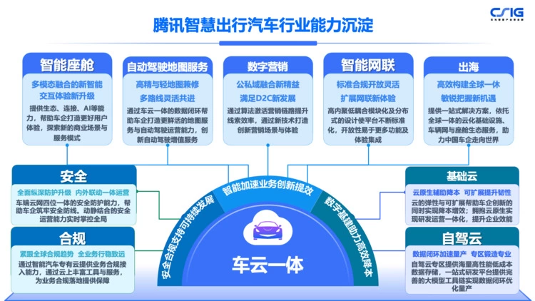 姚振在演讲中表示:“腾讯不造车、不做硬件,专注在平台端、云端、车端提供基础设施,帮助汽车企业建立一体化的链接和融合。” 目前,腾讯助力汽车企业的业务布局,可以概括为三个方向:第一,提供基础云平台、自动驾驶云平台等基建设施,助力企业高效降本;第二,提供智能座舱、智能网联、智能营销等解决方案,助力车企在智能化领域持续创新,探索创新服务模式;第三,提供专业的安全合规服务,助力企业锻造韧性,实现可持续发展。