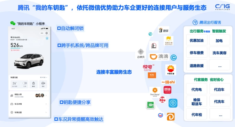例如,腾讯“我的车钥匙”数字钥匙产品,基于微信小程序的产品形态,支持微信分享授权,还连接了代客充电、代客维保取送车等丰富的服务生态,免去线下交接钥匙的繁琐环节。这个场景下,需要连接的平台非常多,包括微信小程序后台、车企的后台、手机、车辆以及外部的管理端等,这些场景都要求智能网联平台具备更丰富的连接和生态化能力。