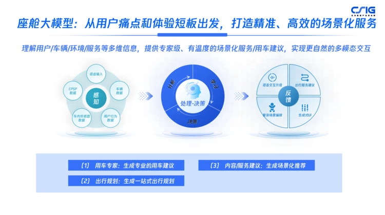 姚振介绍,腾讯搭建了面向智能座舱垂域大模型解决方案,通过多模态感知、更强大分析学习生成式能力,为座舱提供精准、高效的场景化服务及体验。例如,根据对用户、车辆、环境感知,智能生成专业的用车建议、生成一站式出行规划、生成场景化推荐等。目前,腾讯已经沉淀了TB级的高质量的汽车知识,可通过行业大模型应用于智能客服、汽车使用说明等场景。
