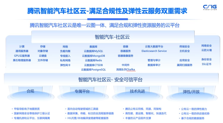姚振认为,云化是保障全流程合规的重要手段。面对智能驾驶不断趋严的合规要求,腾讯在上海松江和河北怀来开设了两个智能汽车云专区,行业内率先实现华东、华北“双专区”模式,可以更好地服务于车联网合规,以及智能驾驶量产阶段的广泛需求。基于云专区,腾讯智能汽车云能够实现全栈与公网隔离,保障从研发到量产的全流程数据安全。