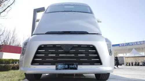“中国燃料电池汽车大会”被视作行业重要风向标,作为大会最抢眼的企业,海珀特极具标杆代表意义。海珀特H49的外观颇具科幻感,据海珀特CEO孙营介绍:“H49采用深度集成的一体化智能氢电底盘,8kg/100km的氢耗,1000km以上的续航,2.5万小时以上的燃料电池系统寿命,安全高效的智驾系统,以及舒适、智能、人性化的驾享空间,实现超越传统柴油干线重卡的全生命周期TVO。”