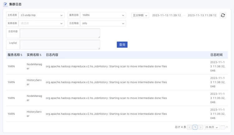 在大数据管理平台持续维护中,通常需要通过日志服务排查定位服务组件的一些问题,包括服务日志错误与错误监控、服务异常分析、服务性能监控优化、用户行为分析等,集中式的查询分析日志,极大地加速了分析问题、定位问题、处理问题的效率。