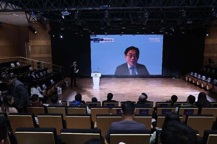 联合国教科文组织教育信息技术研究所所长展涛以远程连线的形式在致辞中表示教育的未来不仅仅局限于技术应用,更重要的是重新思考教育理念和方法。并且强调我们要以人、以学习者为中心,从研究角度出发,在确保人工智能技术应用在正确轨道上的同事,发挥技术对教育的赋能,从而实现教育现代化2035等远大目标。