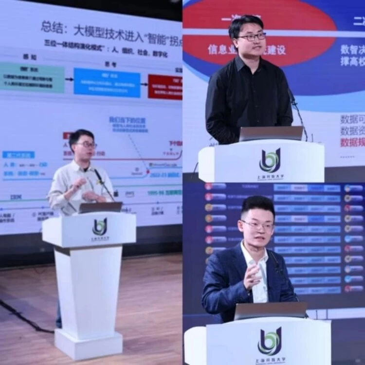 在九位专家的精彩演讲之后,同济大学信息办主任许维胜、海军军医大学信息中心主任沙琨、上海财经大学信息办主任傅川、上海理工大学信息办主任李筠,就AI在教育领域的应用继续展开讨论。如何克服当前AI大语言模型在教育应用中的限制,提高其在教育研究中的高级应用,并促进人机协同教学的发展。同时,还需要关注教师和学生对AI技术的接受度和使用能力,以及如何在教学中合理利用AI技术,避免过度依赖。