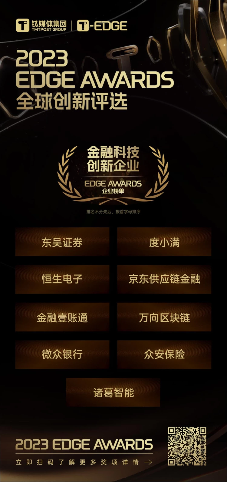 2023 EDGE AWARDS年度金融科技创新企业颁给那些通过全新的技术框架赋能互联网时代变革和基础设施部署,推动着革命浪潮前行的金融科技公司。