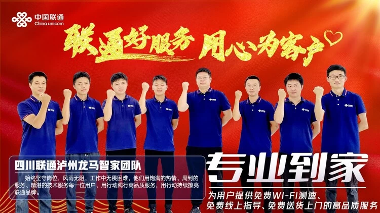 作为一支技术硬、服务优、随销强的尖兵团队,泸州龙马智家团队以11名智家工程师之力守护了一方网络的畅通,为全区33个社区,57个村社,2.1万户家庭宽带用户提供优质的上网服务,覆盖面积多达340.8平方公里。一直以来,泸州龙马智家铁军都在坚守“我的百倍用心,愿您十分满意”的服务信念,团队内部相互团结、相互帮助,配合默契。凭借团队的力量,他们出色地完成了各项工作要求和指标,以高标准的服务质量和精益求精的敬业精神承担起联通“网络守护者”的责任与使命。