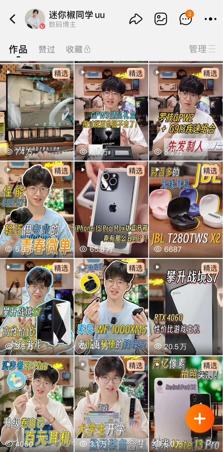 “迷你椒同学uu”真名马翊然,平时网友喜欢称他为“椒同学”,“那段时间因为‘何同学’的出圈,数码博主特别流行这样取名。”