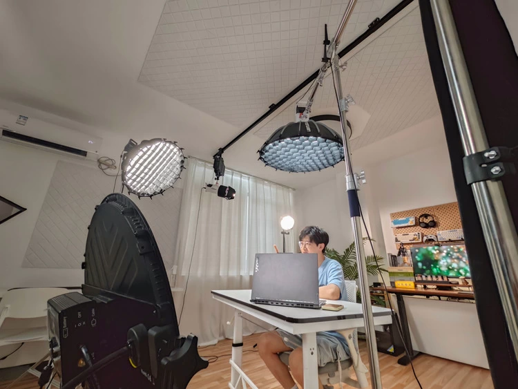 工欲善其事必先利其器。随着自媒体人越来越多,社交媒体上内容海量暴增,科技数码领域更是如此。作为一名摄影爱好者,马翊然对画面质感要求很高。为了做出差异化内容并与“大众款”拉开距离,他花了10多万购置了一批专业的拍摄设备和灯光,光是摄影灯就花了3万元。“这个配置比普通工作室高出数倍,为的就是做出高质感的内容。”