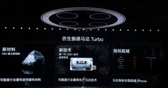 一加 12 全球首发与瑞声科技联合研发的仿生振感马达Turbo。这颗仿生振感马达Turbo 使用行业最先进的稀土磁性材料 N54 SH 磁钢,配合全球首发的行业最新第五代磁路技术CSA+,在振动量、频宽、响应速度、振动丰富度等多维度全面超越 iPhone,为消费者带来了有生命力、符合直觉、不打扰的振感体验,马达体验再领先行业 1 年。