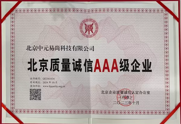 北京质量诚信等级评判是一项严格而权威的评定标准,旨在表彰于产品质量、服务水平、诚信经营和社会责任等方面表现出色的企业。评价过程充分考虑了企业的质量管理体系、创新能力、客户满意度、品牌影响力和社会责任履行等关键指标。