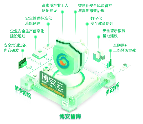 针对当前企业安全生产数字化转型需求,博晟安全作为国内专业的工业互联网+安全生产全面解决方案提供商,凭借在安全生产领域20余年长期积淀的专业研究以及数字技术创新应用能力,打造了一站式安全生产云服务平台“博安云”,构建了多元化的安全生产数字化智能化产品服务体系,依托“平台+内容+终端+服务”一体化运营模式,赋能企业安全生产的信息化建设和数字化转型,全方位助力企业“数字化安全培训”目标落地。