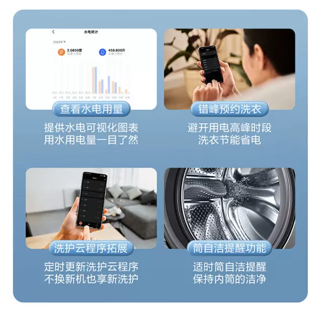 使用美的美居APP还能远程智能控制,预约洗衣、调节洗涤参数、了解水电用量统统没问题,仅需吩咐小美音箱,一句话就能完成洗涤。