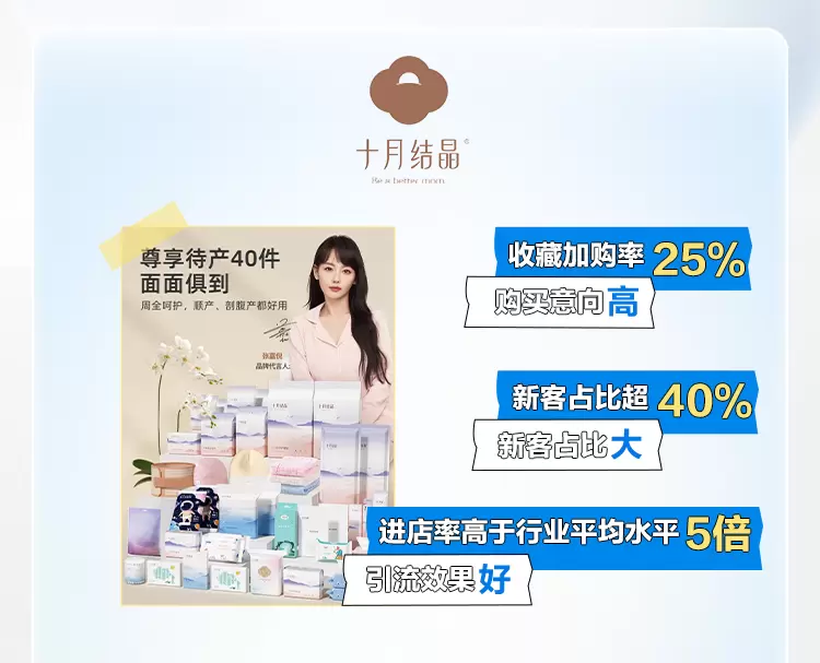 与此同时,品牌可以通过星任务的实时进店数据追踪,更高效地优化投放策略,不仅实现了与目标群体的高效沟通,进店率高于同行业5倍之多,进店成本仅为大盘的50%,更是成功拉动四成以上的新客进店,收藏加购率高达25%。