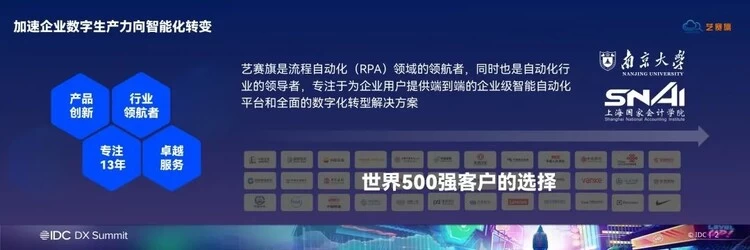 吴鑫介绍,艺赛旗是流程自动化(RPA) 领域的领航者,同时也是自动化行业的领导者,专注于为企业用户提供端到端的企业级智能自动化平台和全面的数字化转型解决方案。