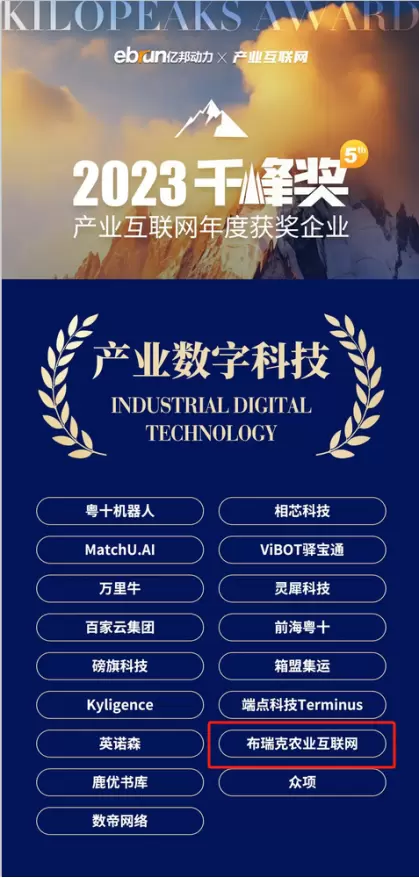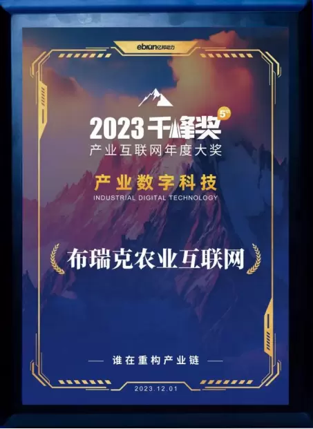 布瑞克农业互联网荣获亿邦产业互联网“2023千峰奖·产业数字科技”