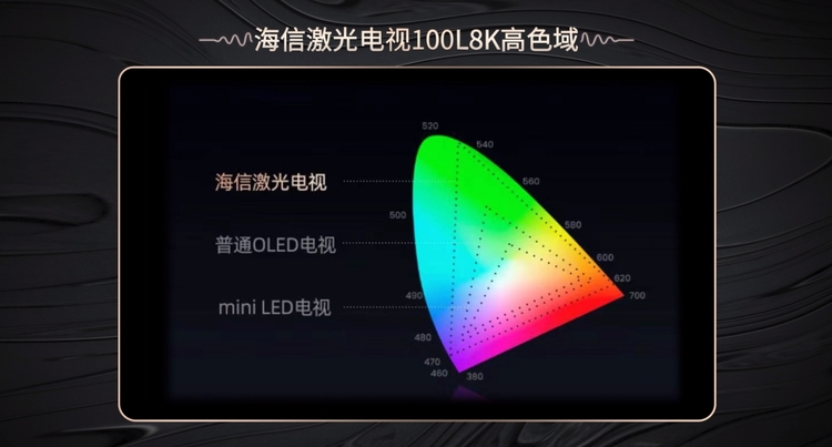 画质表现方面,海信激光电视新品L8K搭载了最新一代LPU数字激光引擎,纳米级控光突破性实现800万像素点控光,在色域、色准、动态清晰度、感知亮度等方面,都达到了专业级效果。色域覆盖高达110% BT.2020,达到行业最高,高色准ΔE≈0.9,真实呈现靓丽原画。10.7亿原色的电影级高色阶,全面覆盖电影工业标准,影片细节也能精准还原,带来前所未有的生动画面。